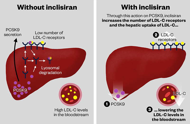 It’s a small interfering RNA(siRNA) therapy that works by silencing the PCSK9 gene in the liver.