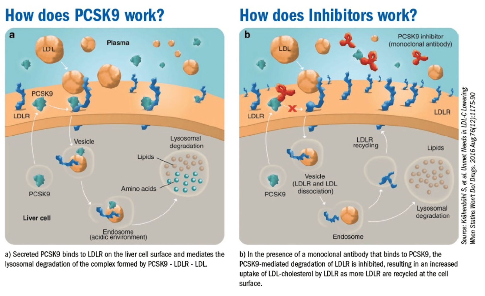 PCSK9 is a protein made by the liver which marks the LDL-R for death. Meaning it can no longer take LDL away from the blood.