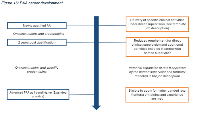 The review states: Without progression, PAs/AAs remain generalists. Now, if you put these generalist PAs into speciality locations, this could potentially risk patient safety or hinder service delivery.